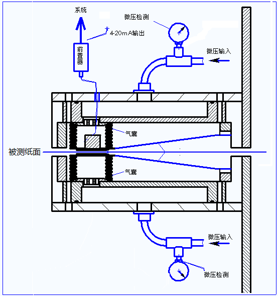 ?GF—CLP成紙厚度傳感器是集高精度傳感技術、氣浮流體力學專業、精密氣動